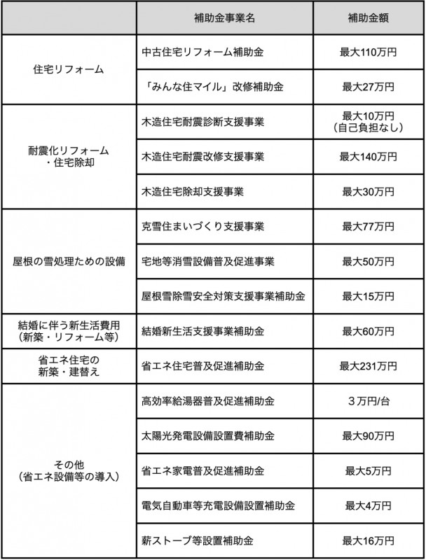 南魚沼市のリフォームや新築などで利用できる補助金制度について、一覧にまとめました。
