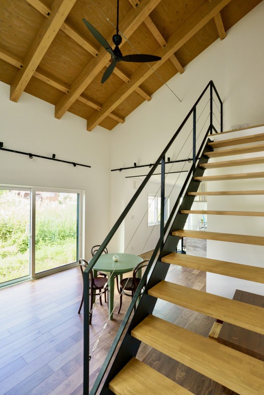 アイアンのスケルトン階段は開放感を演出。