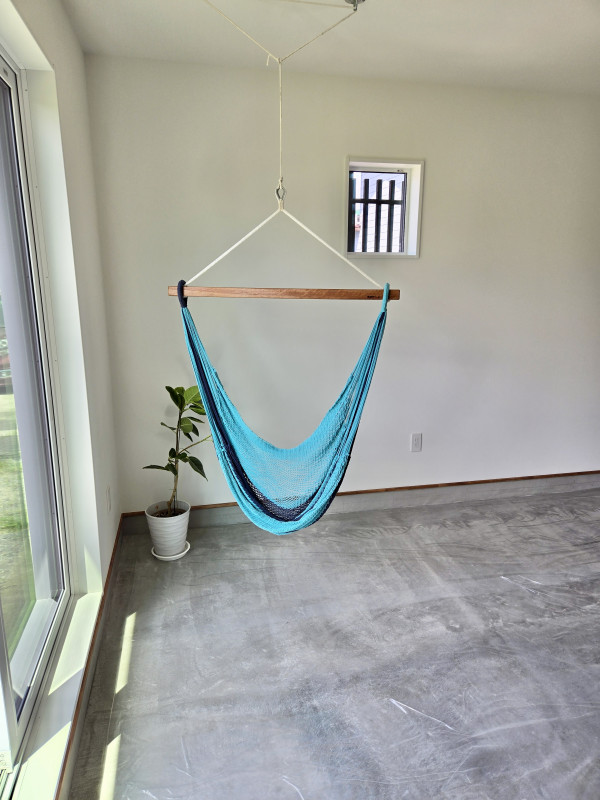 土間スペースは、ハンモックでお子様が遊んだり、自転車や外遊びの道具、薪ストーブを置くことも可能に。