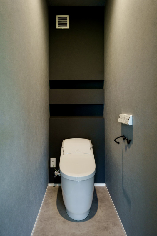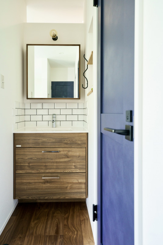 元々キッチンがあったスペースは、インテリアに調和する洗面スペース、トイレ、ファミリークロークに。