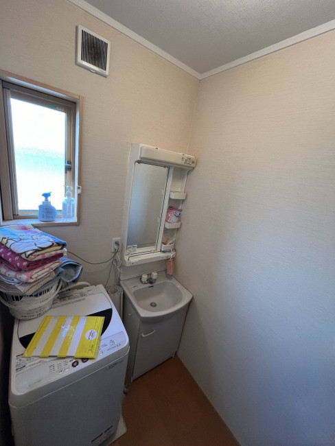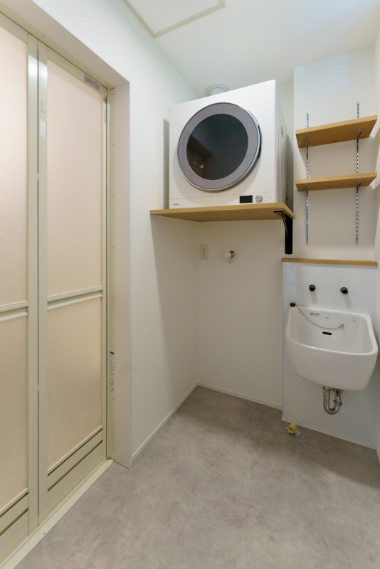既存の洗面台と窓部分に、乾太くんと洗濯物を下洗いできるスロップシンクを新設。