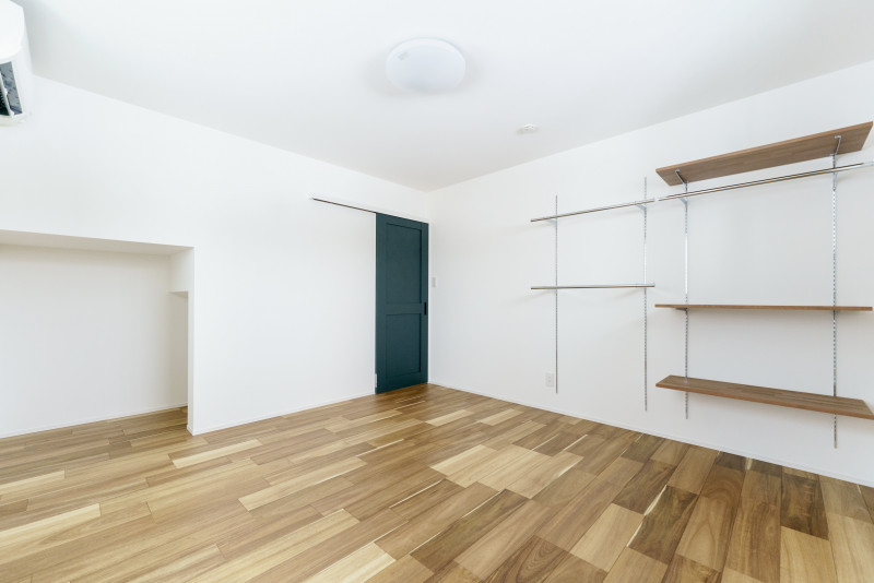 ワークスペースのお部屋は、お好みの棚や小物で気分の上がる空間に。