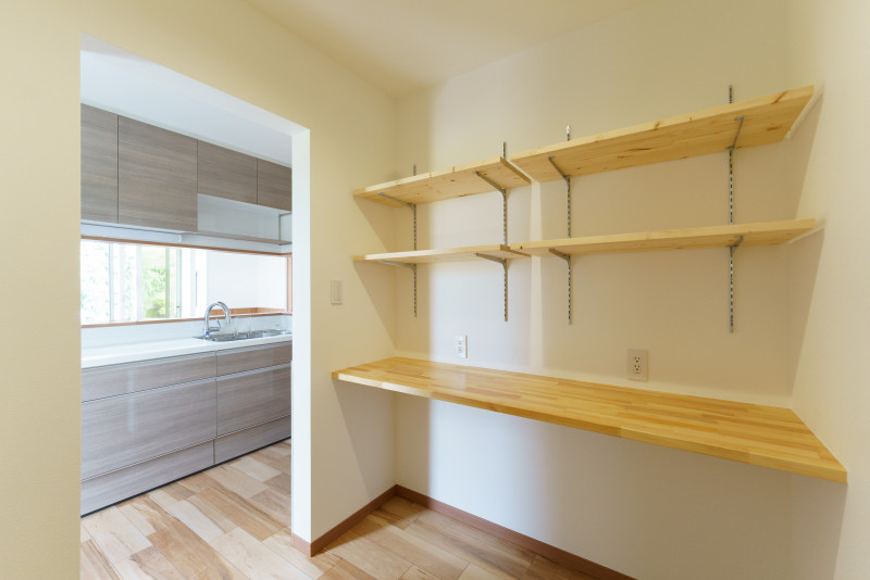 キッチン背面には冷蔵庫が2台置ける2.5畳のパントリー。