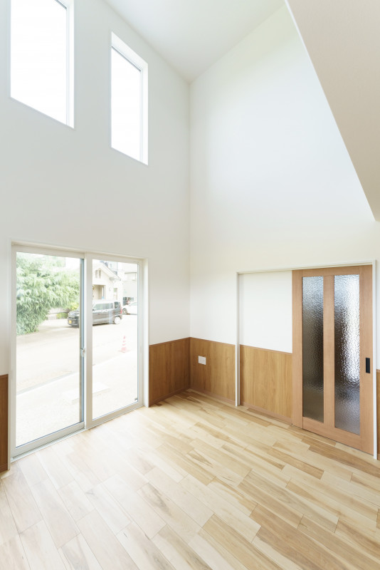 家族でくつろぐリビングは、開放感のある吹き抜け天井です。