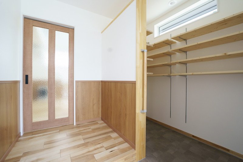 奥に備えたウォークインクローゼットには洋服はもちろん、布団の収納スペースも確保。