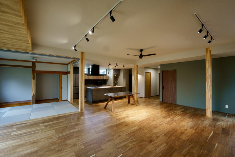 1階(約36坪)のみ間取りを変更し、既存の和室を活かして“和モダンな空間”にリデザインしました。