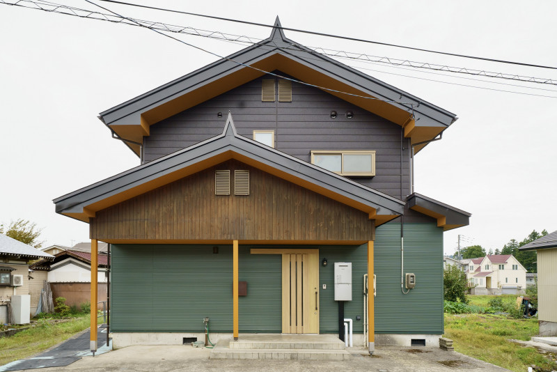 元々あった木の外壁部分を活かしつつ、グリーンの外壁と調和させることで和モダンな印象に。
